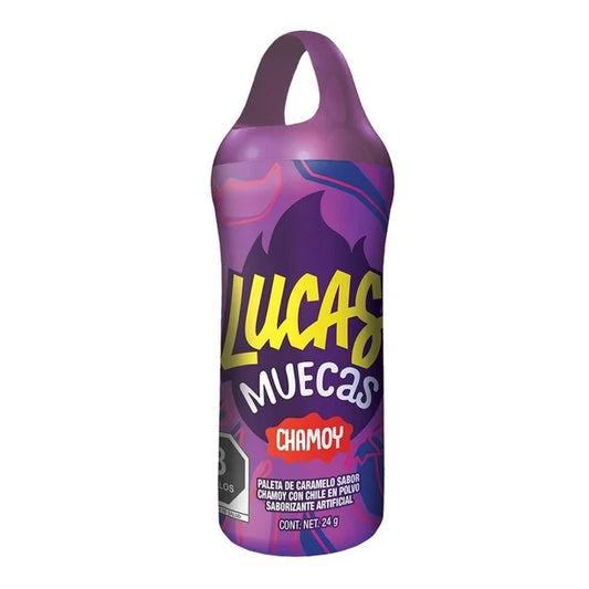 Paleta de caramelo Lucas Muecas sabor chamoy con chile en polvo 10 ea